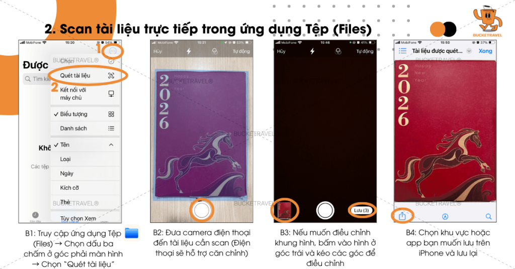 B. Scan tài liệu trực tiếp trong ứng dụng Tệp (Files)