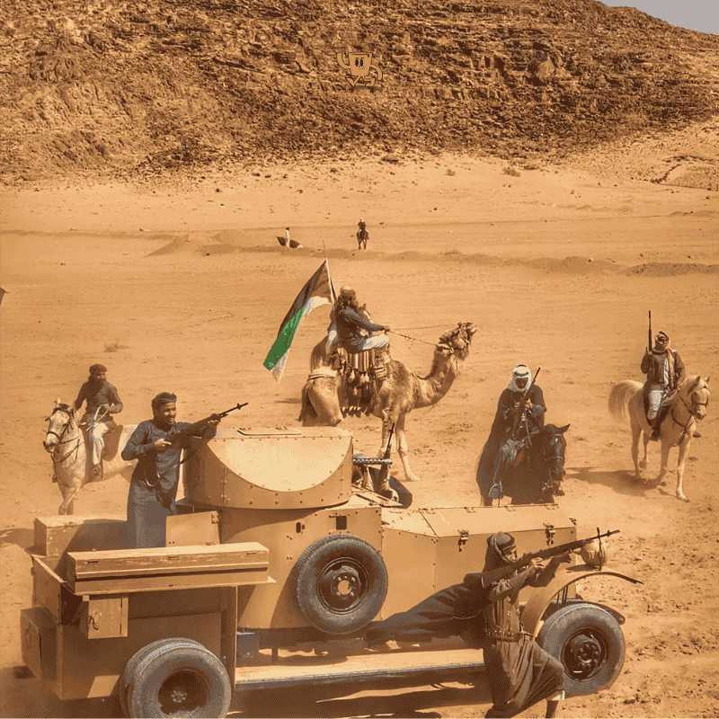 Rồi tiếng súng vang lên từ xa, những tay súng Ả Rập xuất hiện trên các mỏm đá, phía sau bao cát, trên lưng ngựa và cả lạc đà. Cuộc phục kích diễn ra bất ngờ, dữ dội và đầy kịch tính. Bụi cát tung lên theo vó ngựa, tiếng hò hét hòa lẫn tiếng súng, biến sa mạc Wadi Rum thành một chiến trường sống động. Khoảnh khắc ấn tượng nhất là khi đoàn kỵ binh Ả Rập phi song song với đoàn tàu đang di chuyển, cờ Jordan tung bay trong gió. Đó không chỉ là một hình ảnh đẹp về mặt thị giác, mà là một biểu tượng mạnh mẽ của sự chuyển giao lịch sử mà không phải ai cũng từng có dịp thấy trong đời.