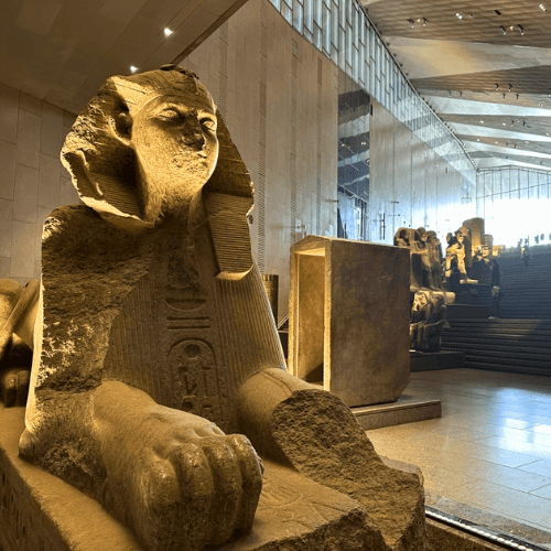 Khám phá Cairo qua khu chợ cổ Khan el-Khalili và Bảo tàng Văn minh Quốc gia, kết thúc ngày trên rooftop ngắm Kim tự tháp Giza lên đèn.