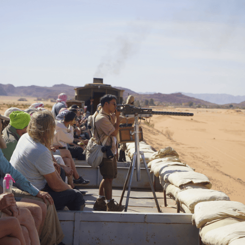 Ngồi toa cổ nghe câu chuyện người Bedouin đứng lên, cảm nhận từng nhịp bánh sắt lăn qua sa mạc khô cằn.