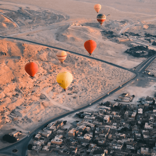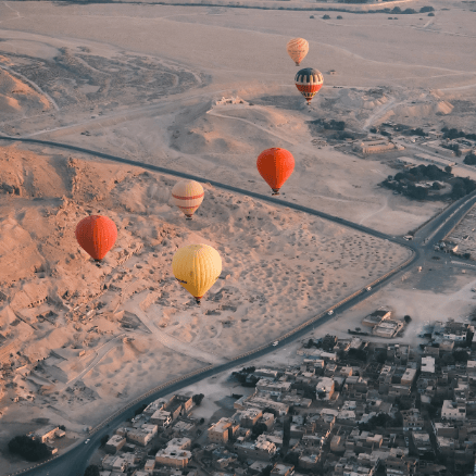 Bay khinh khí cầu lúc bình minh để ngắm toàn cảnh sông Nile, Thung lũng các Vị Vua và các kỳ quan cổ đại. Tiếp tục khám phá Đền Karnak hùng vĩ trước khi rời thành phố cổ và bay về Cairo.