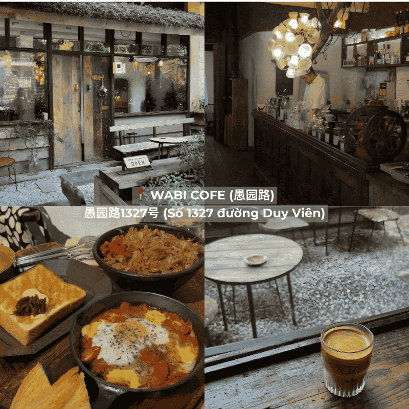 Nếu Thượng Hải có “Tiểu Kyoto”, thì WABI COFE chính là một trong những đại diện rõ ràng nhất. Phong cách wabi-sabi (vẻ đẹp của sự không hoàn hảo, vô thường và giản dị) pha Á Đông, giản dị, tĩnh lặng, có sân nhỏ phía trước. Đây là quán rất hợp để ngồi cả buổi chiều, không cần làm gì nhiều: đọc sách, viết vài dòng, hay chỉ nhìn nắng đổ qua hiên – một không gian chữa lành đúng nghĩa luôn.