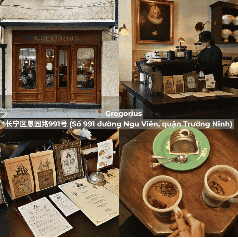 Gregorius mang phong cách retro trầm – cổ điển, bước vào là thấy ngay không khí chậm rãi, vững vàng. Menu viết tay, từng chi tiết nhỏ đều rất “có tâm”. Điểm khiến quán nổi tiếng chính là Dirty coffee (espresso nóng rót trực tiếp lên lớp sữa lạnh) – nhiều người nói rằng đây là ly dirty ngon nhất Thượng Hải. Cà phê đậm, lớp sữa mịn, vị cân bằng – kiểu uống xong là làm người ta muốn ngồi yên một lát, không vội nói chuyện luôn.